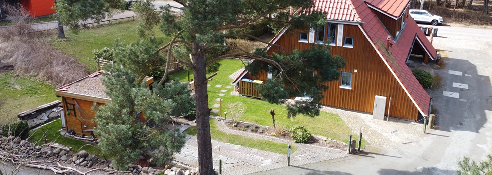 Nach dem Ortskern fahren Sie parallel zum Seedeich (bitte lassen Sie sich nicht vom Ortsausgangsschild irritieren). Hinter der Ostseekurklinik biegt die Straße rechts ab. Dort befindet sich unmittelbar das Wohngebiet KIEK ÖVER. Das Haus 26 A erreichen Sie über die dritte Einfahrt links.
